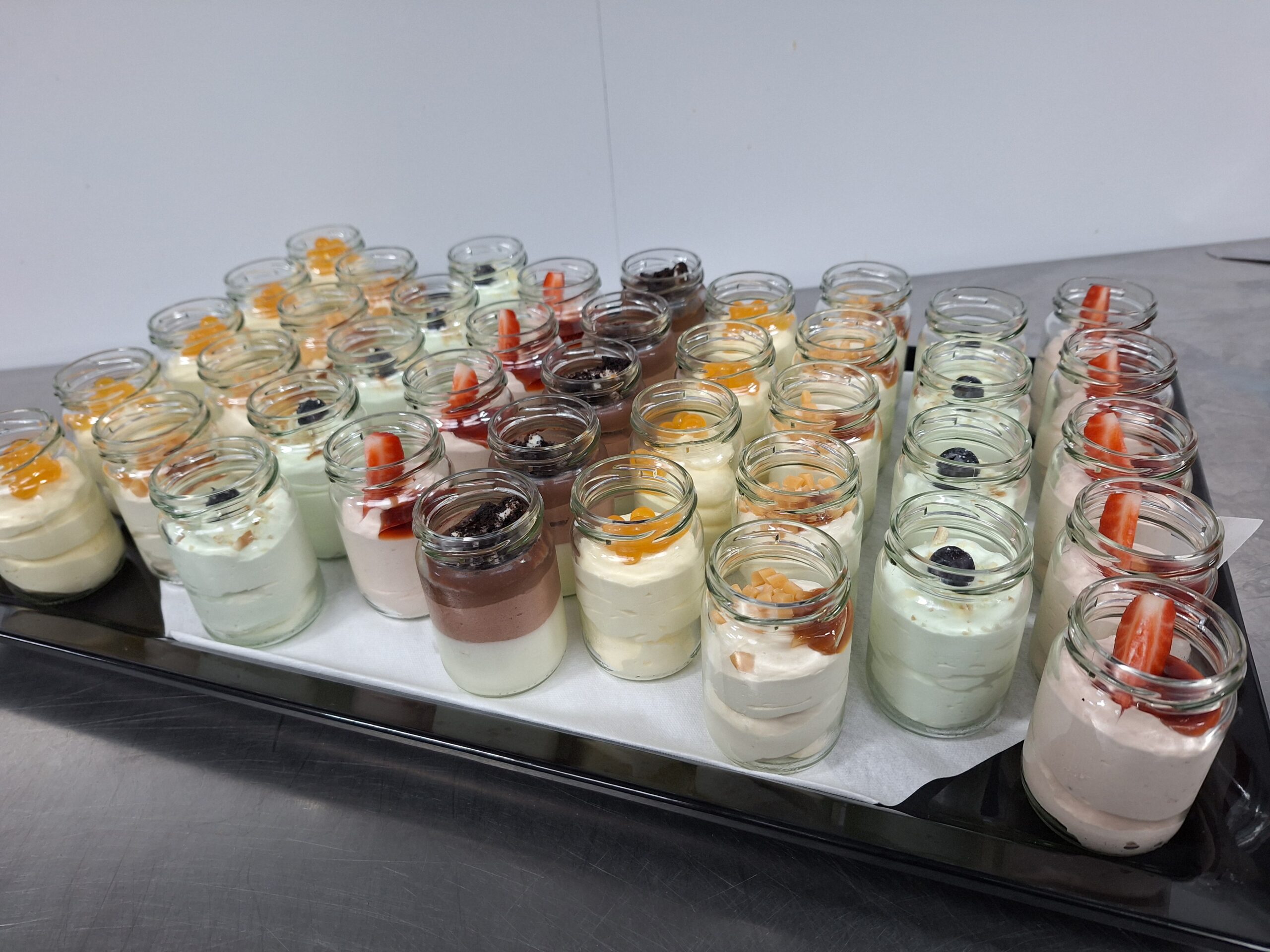 Kleine glaasjes met diverse soorten mousse.